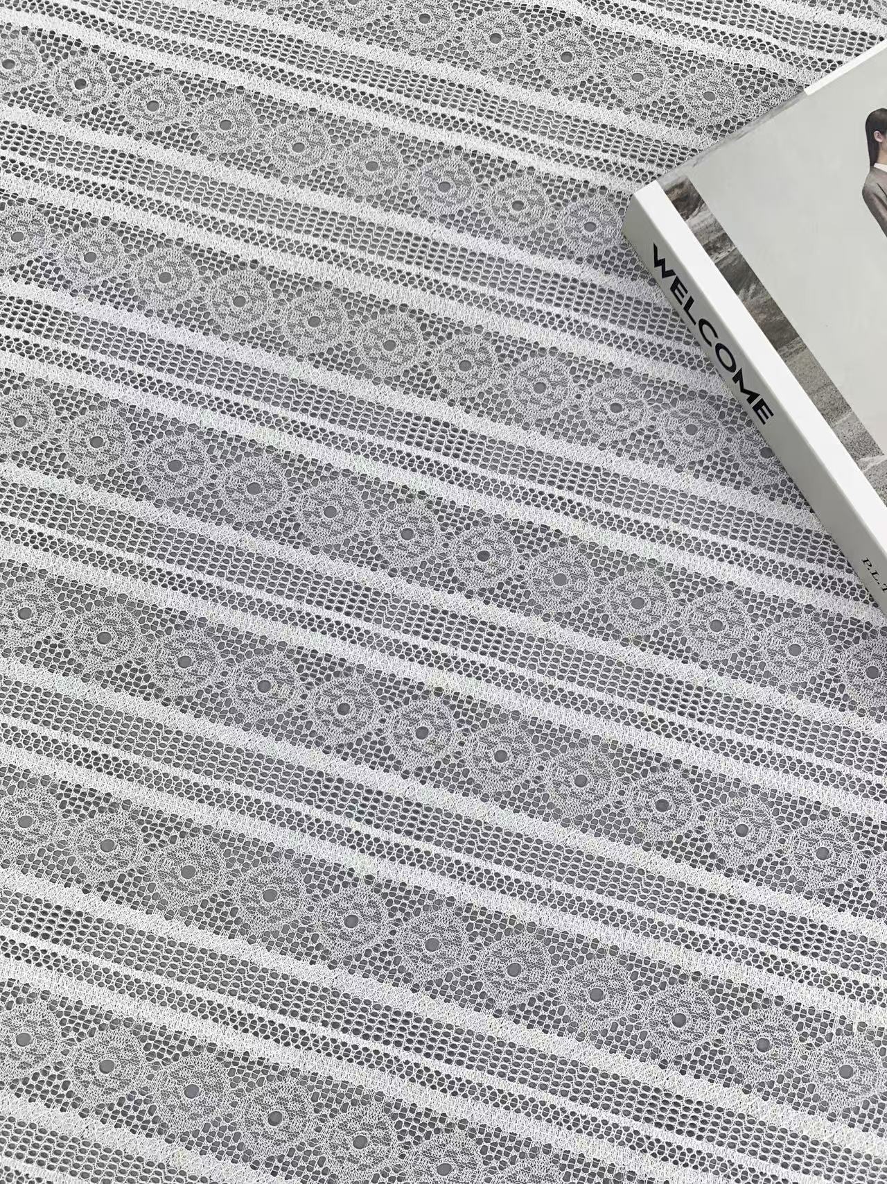 100% Polyester Lace Fabric Thin Breathable Geometric Circular Pattern Mesh Embroidery for Women Dress Garment